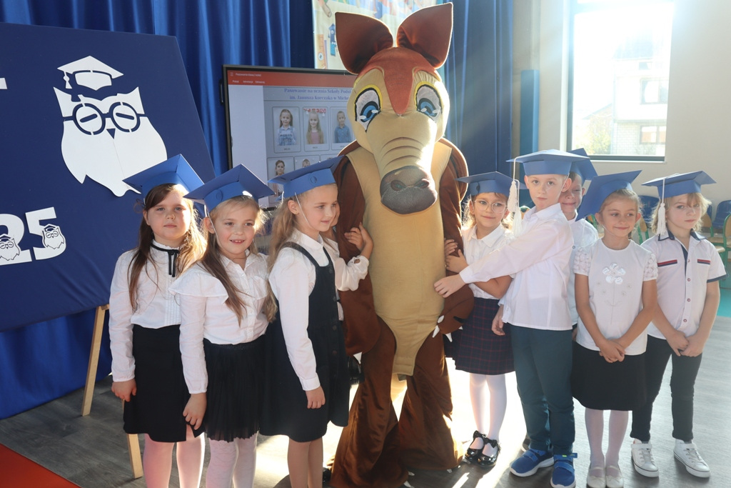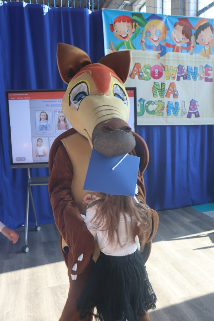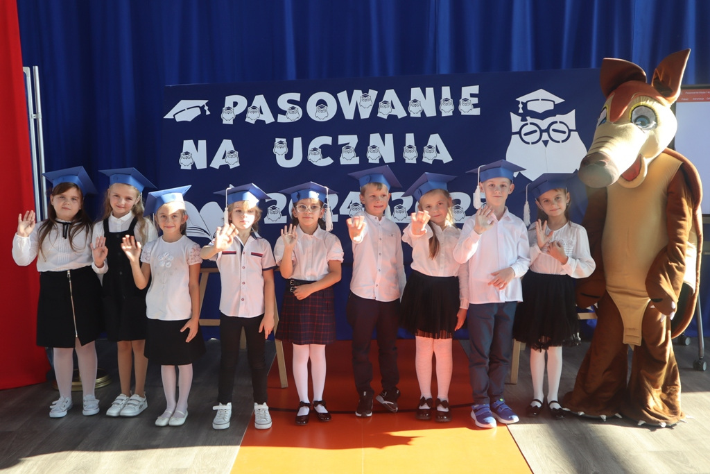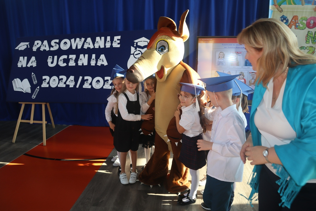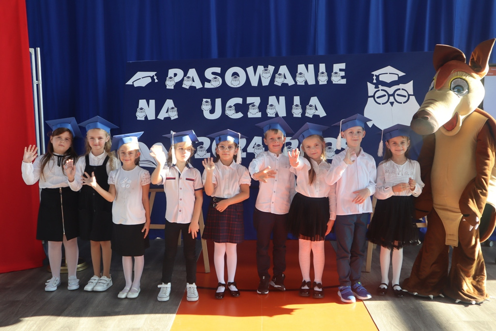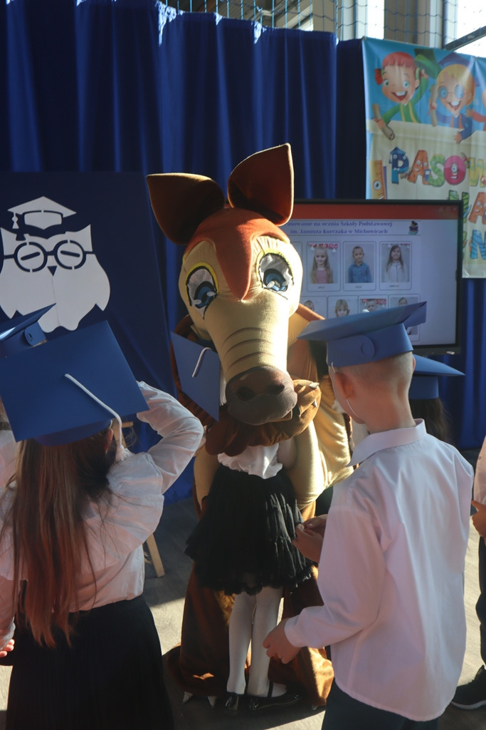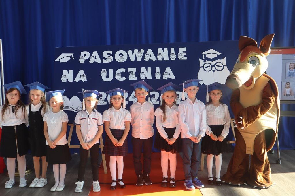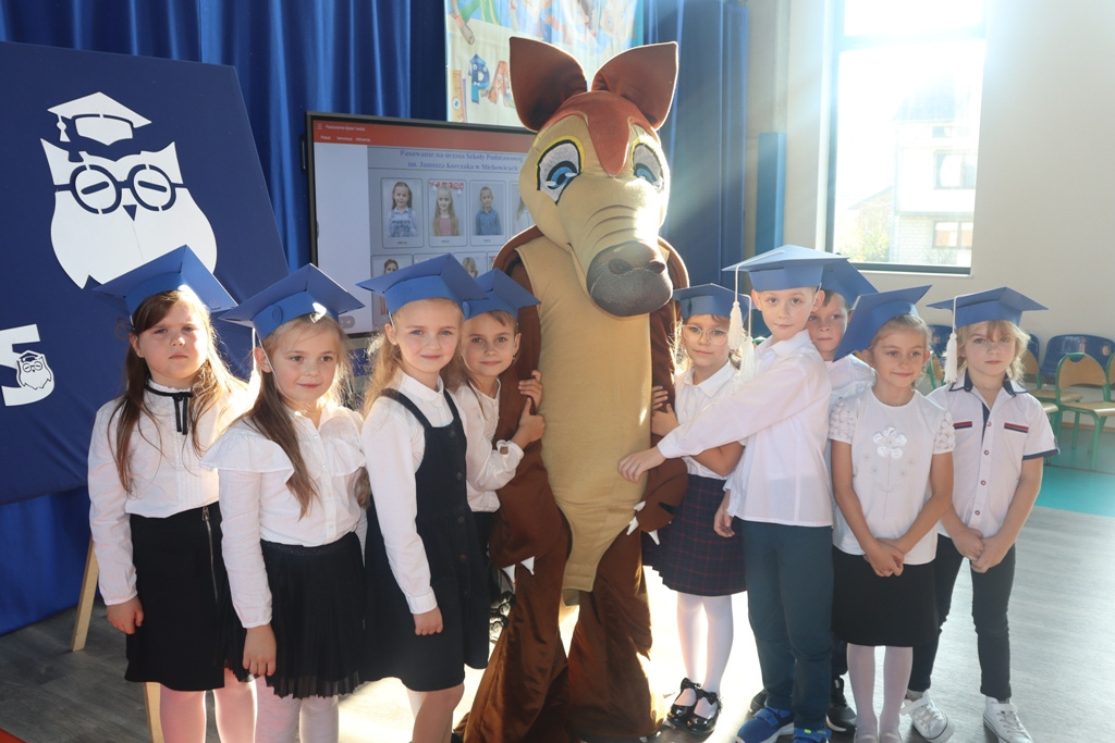 Zastępca Wójta p. Magdalena Piekut, Skarbnik Gminy p. Ewa Milczarek przewodnicząca Rady Rodziców p. Agnieszka Leszczyńska, dyrektor naszej szkoły p. Beata Filutowska, rodzice pierwszoklasistów oraz uczniowie klas 0-III z wychowawczyniami. Po oficjalnej części powitania gości przez panią Dyrektor, pierwszoklasiści zaprezentowali swoje artystyczne umiejętności, a zgromadzona widownia nagrodziła małych aktorów głośnymi brawami.Dzisiejszą uroczystość prowadziła uczennica klasy IV Celina Gołębiowska, której należą się serdeczne podziękowania. Najważniejszym momentem było ślubowanie na sztandar szkoły. Aktu pasowania na ucznia Szkoły Podstawowej im. Janusza Korczaka w Michowicach dokonała pani Dyrektor. Uczniowie otrzymali pamiątkowe dyplomy, a pani Dyrektor wręczyła legitymacje szkolne. Pierwszoklasiści nie zapomnieli również o swoich rodzicach, którym serdecznie podziękowali, recytując krótki, wzruszający wiersz, a także śpiewając piosenkę i wręczając własnoręcznie wykonane upominki.Po oficjalnej uroczystości bohaterowie tego dnia otrzymali piękne prezenty od zaproszonych gości,Rady Rodziców i od kolegów z klas 0 – III. Dużą niespodzianką dla wszystkich, a szczególnie dla pierwszoklasistów, były odwiedziny maskotki SKO ”Pancernika Hatetepesa”, którego każdy chciał przywitać i przytulić. Pierwszoklasiści otrzymali prezenty również od dziewczynek z aktywu SKO.