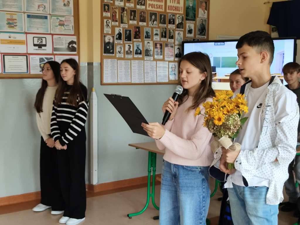 W czasie pełnego wzruszeń i radości wydarzenia uczniowie klasy V i VIII pod kierunkiem Pań: Małgorzaty Leszczyńskiej i Agnieszki Janiszewskiej wyrazili swoim nauczycielom wdzięczność za codzienną pracę oraz troskę.