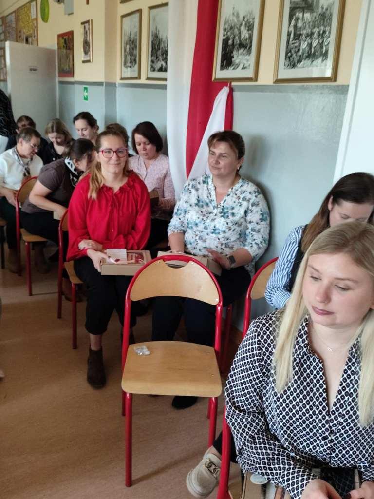 Uczniowie na koniec obdarowali pedagogów drobnym upominkiem.