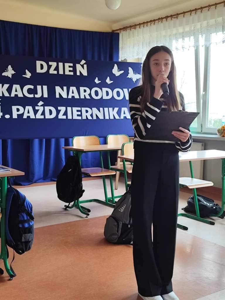 W imieniu całej społeczności szkolnej głos zabrała przewodnicząca Samorządu Uczniowskiego, Aleksandra Kowalczyk, która złożyła serdeczne życzenia wszystkim nauczycielom, dziękując za trud, cierpliwość i poświęcenie.