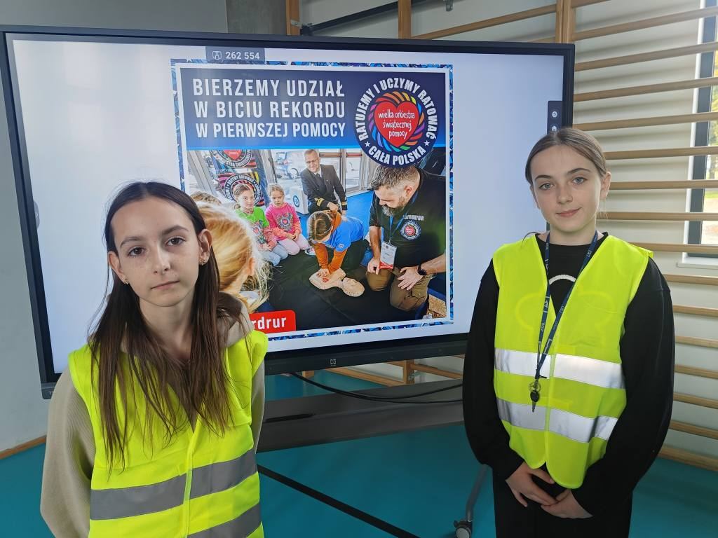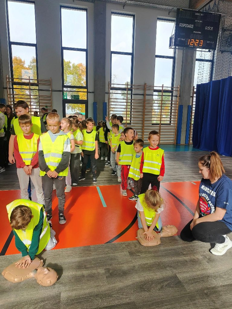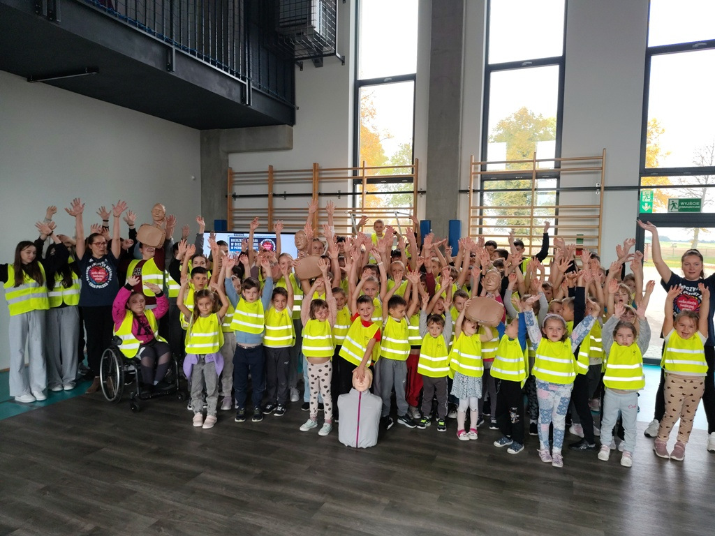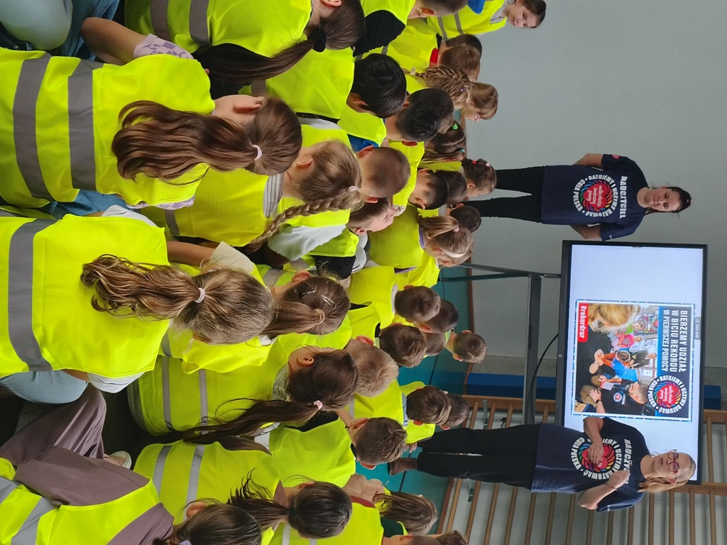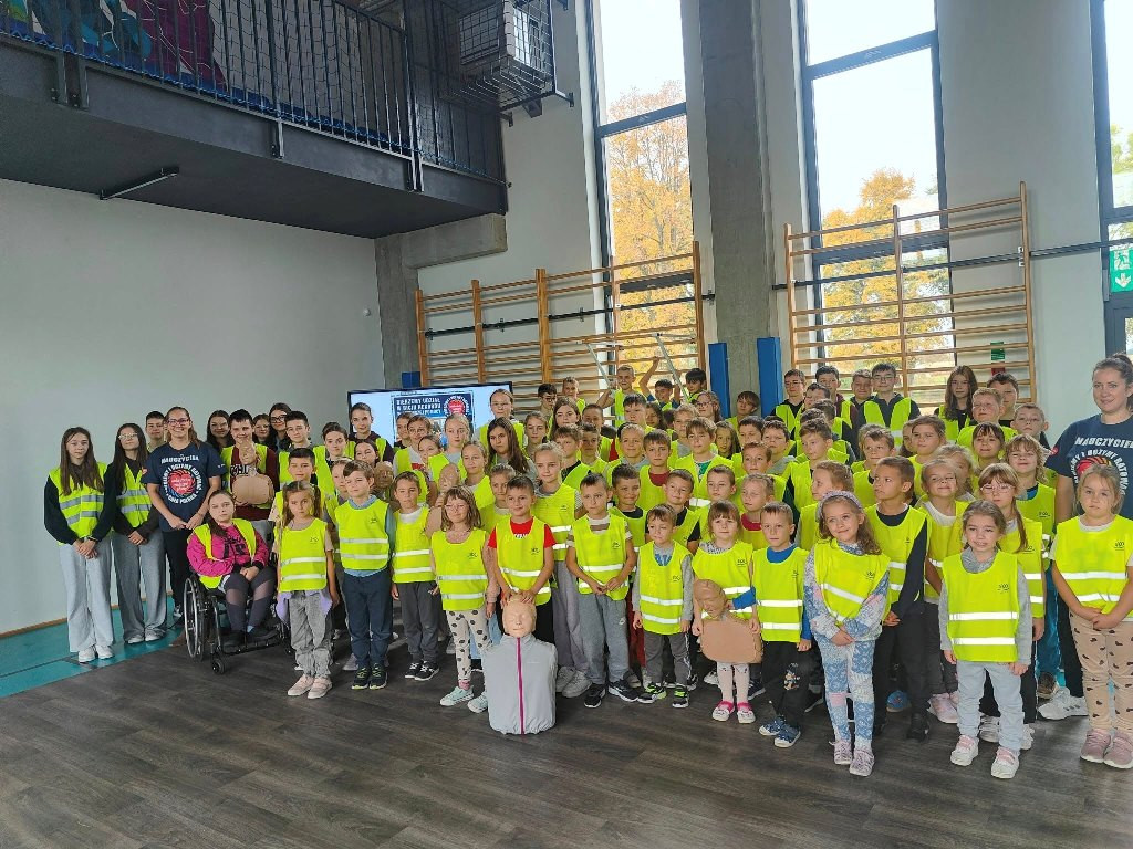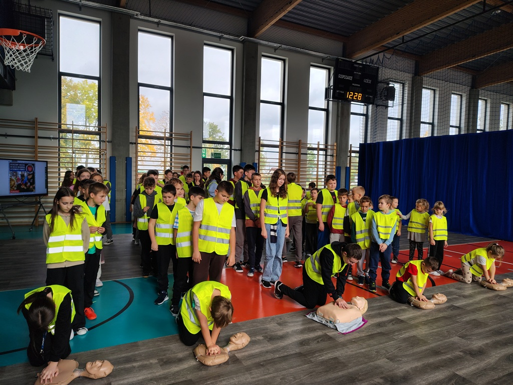Dziś nasza szkoła wzięła udział w wyjątkowej akcji bicia rekordu w Pierwszej Pomocy, organizowanej przez Fundację WOŚP w ramach Europejskiego Dnia Przywracania Czynności Serca. To wydarzenie jest częścią programu „Ratujemy i Uczymy Ratować”. Uczniowie, nauczyciele połączyli siły, by pobić rekord w udzielaniu pierwszej pomocy. To nie tylko świetna zabawa, ale przede wszystkim nauka ratowania życia i dbania o bezpieczeństwo na drodze. Uczniowie prowadząc nieprzerwanie przez pół godziny RKO, uratowali wiele ludzkich istnień. W ramach akcji ćwiczyliśmy w kamizelkach odblaskowych, bo życie udzielającego pomocy jest tak samo ważne, jak tego kto tej pomocy potrzebuje.