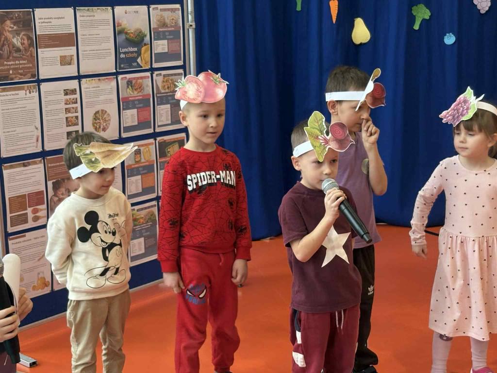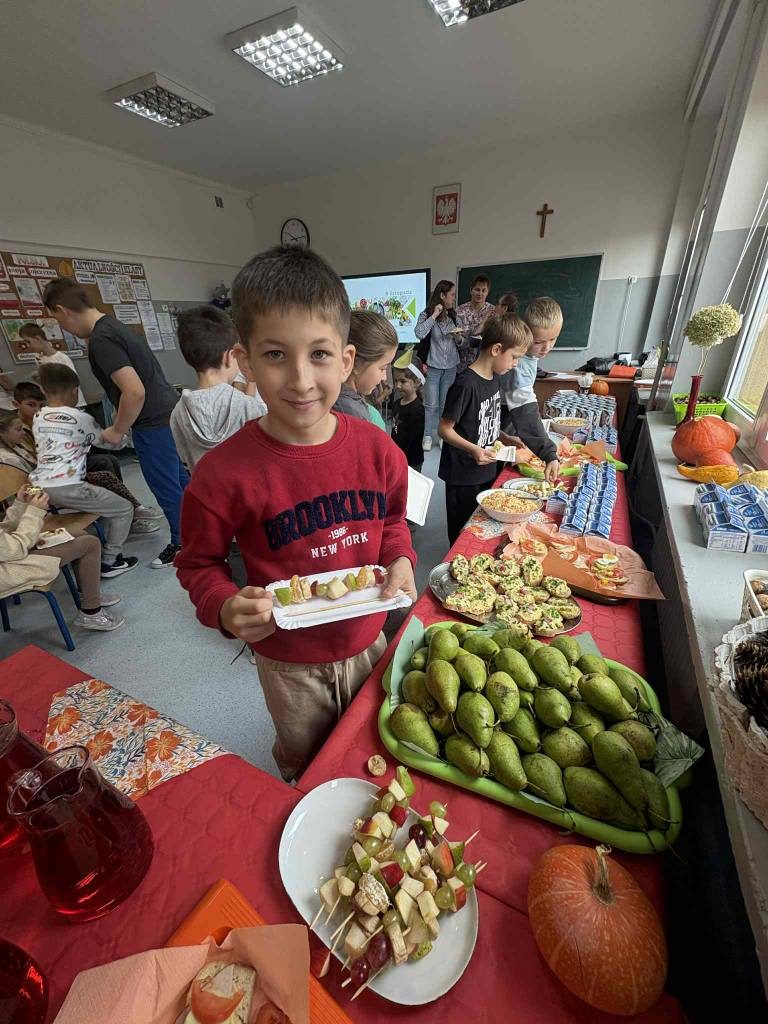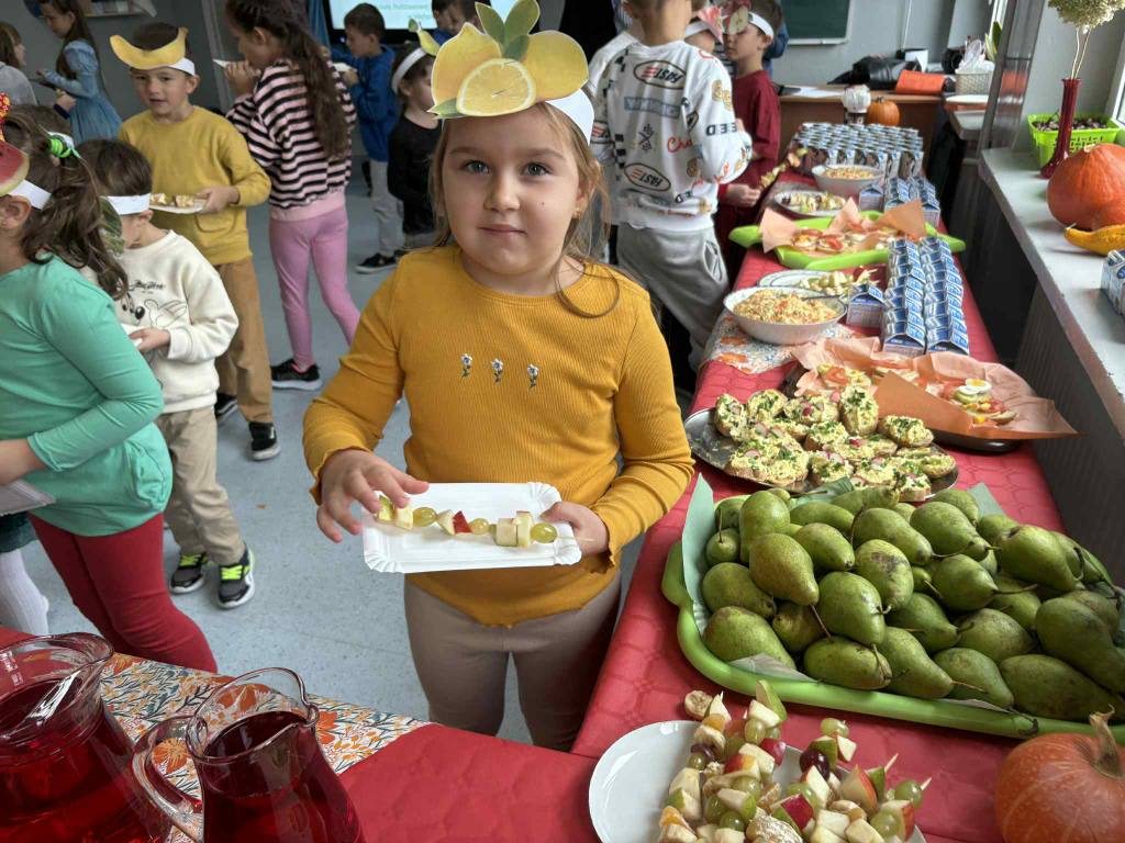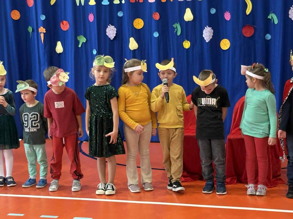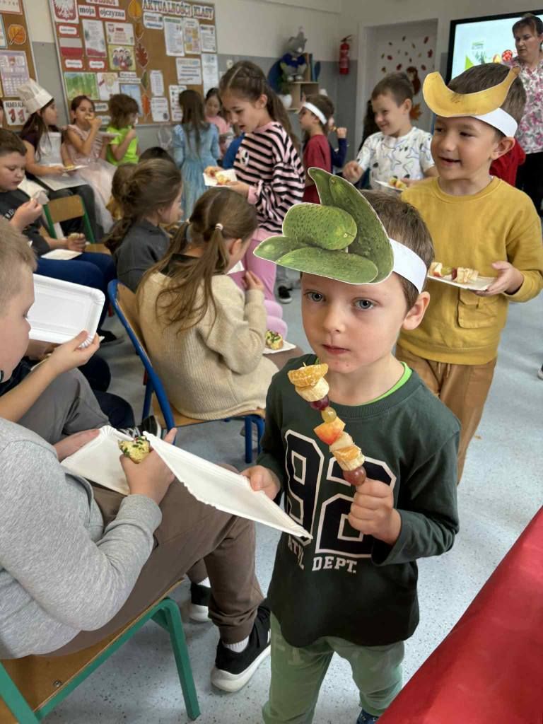 Po występie wszyscy uczniowie klas „0” – III wspólnie degustowali przygotowane przez siebie wcześniej, kolorowe kanapki, sałatkę jarzynową oraz pastę warzywną.