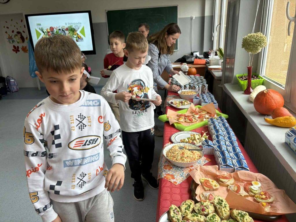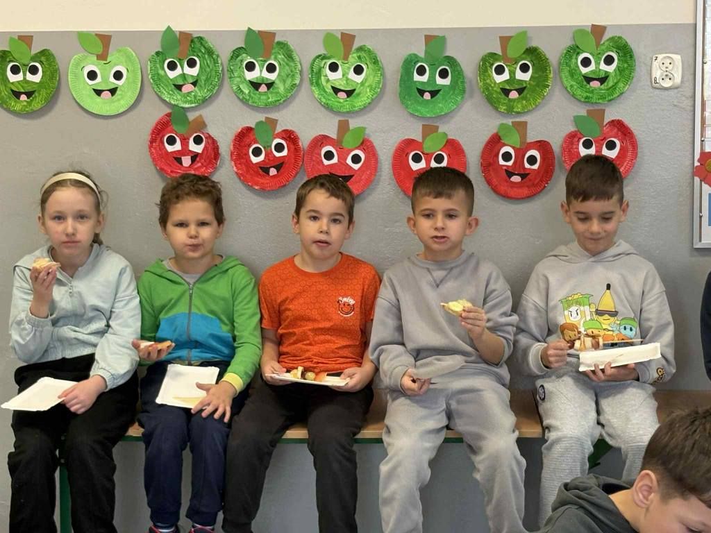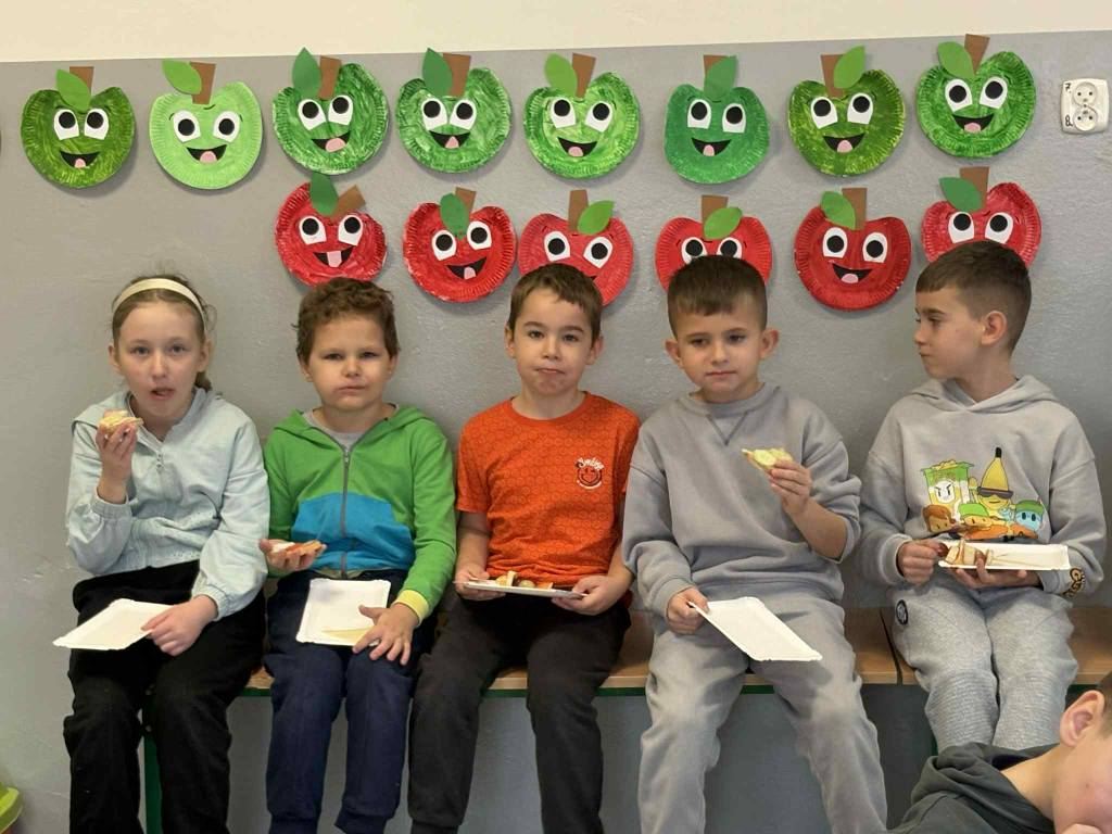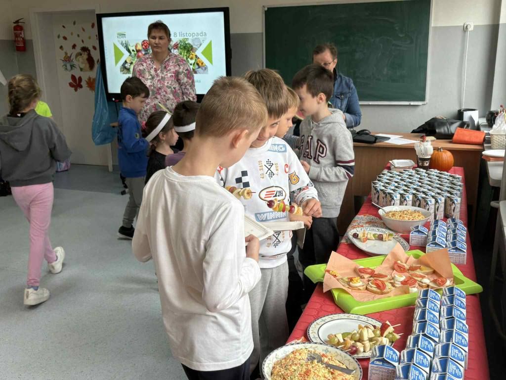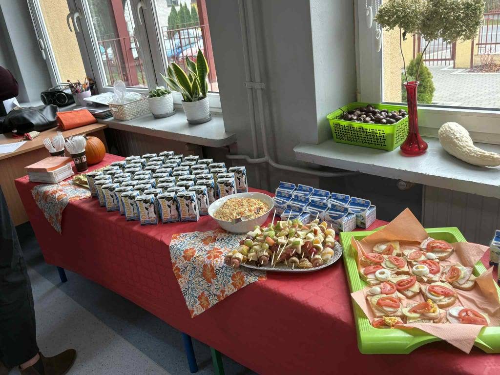 Po występie wszyscy uczniowie klas „0” – III wspólnie degustowali przygotowane przez siebie wcześniej, kolorowe kanapki, sałatkę jarzynową oraz pastę warzywną.