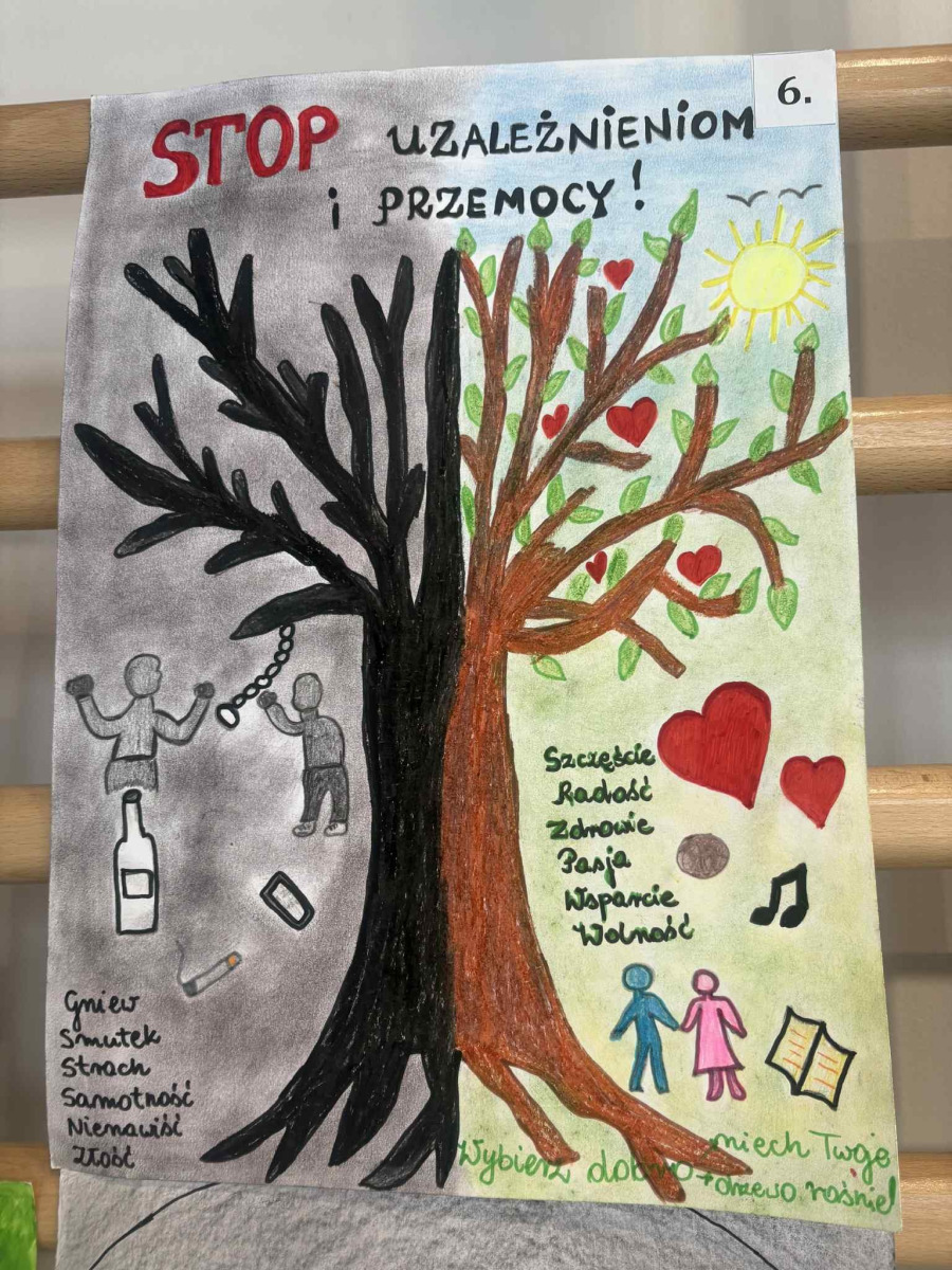 13 listopada 2025 r., rozstrzygnięto w naszej szkole VII Gminny Profilaktyczny Konkurs Plastyczny „Stop Uzależnieniom i Przemocy”.