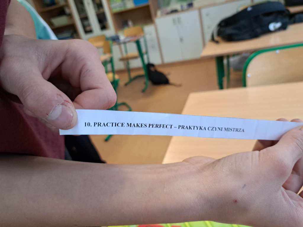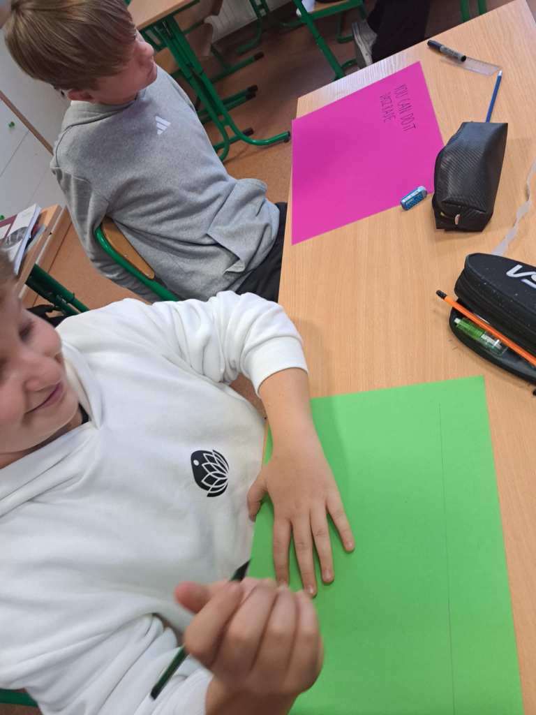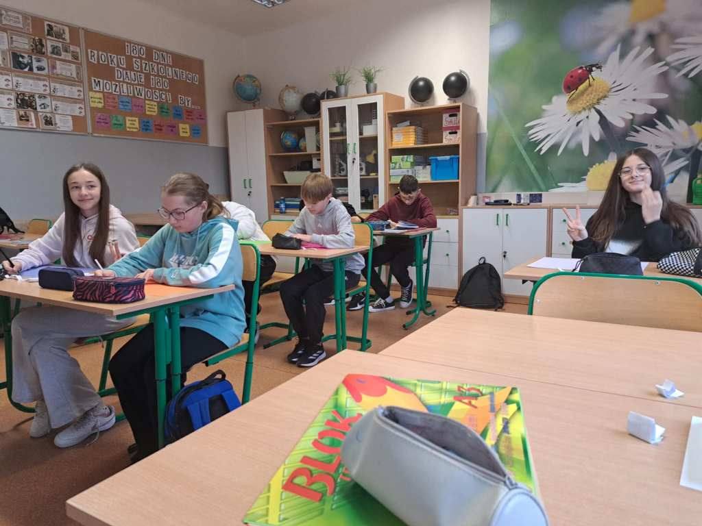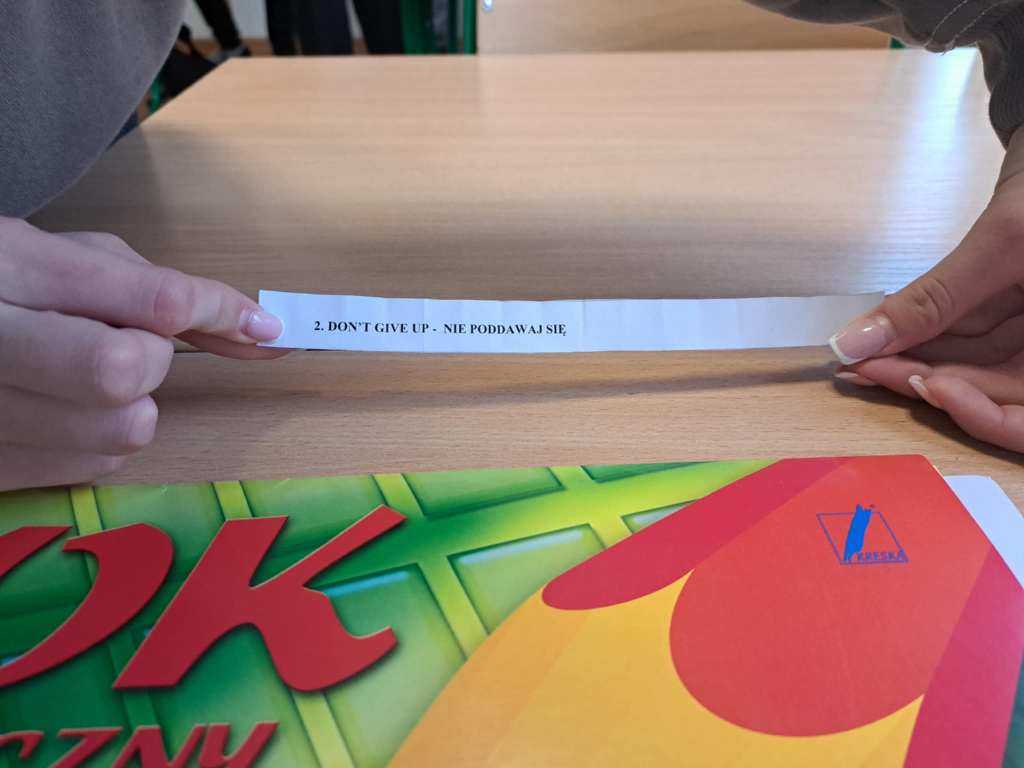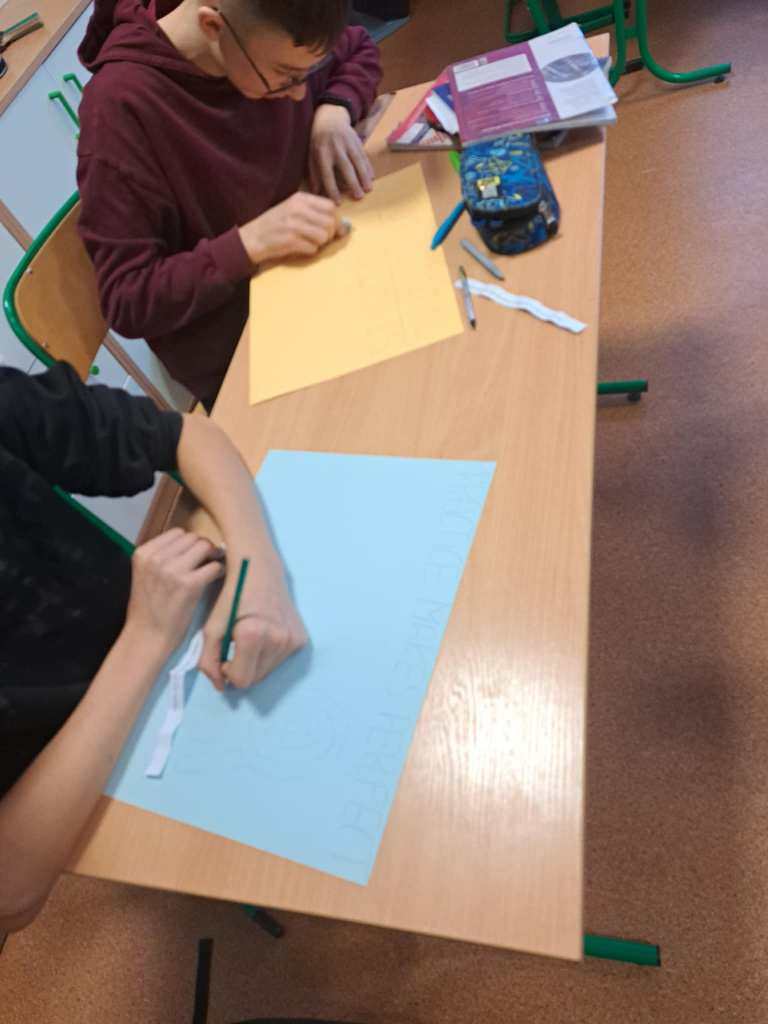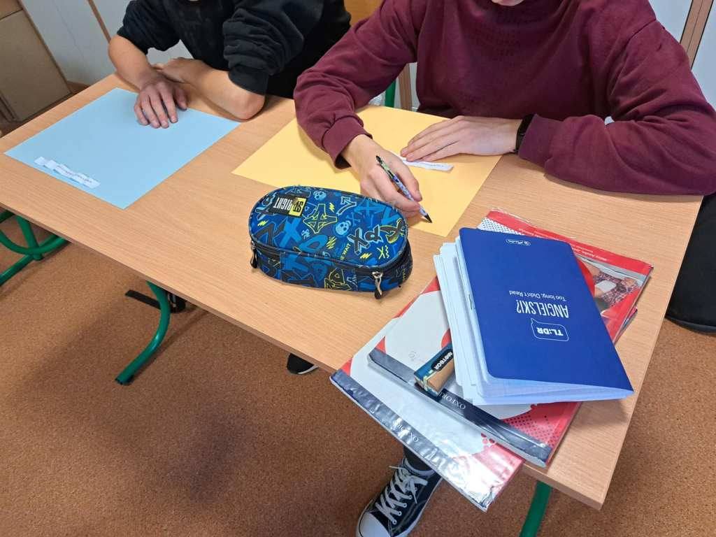 Na lekcji języka angielskiego uczniowie klasy VIII poznawali i zapisywali miłe i pozytywne słowa w języku angielskim.