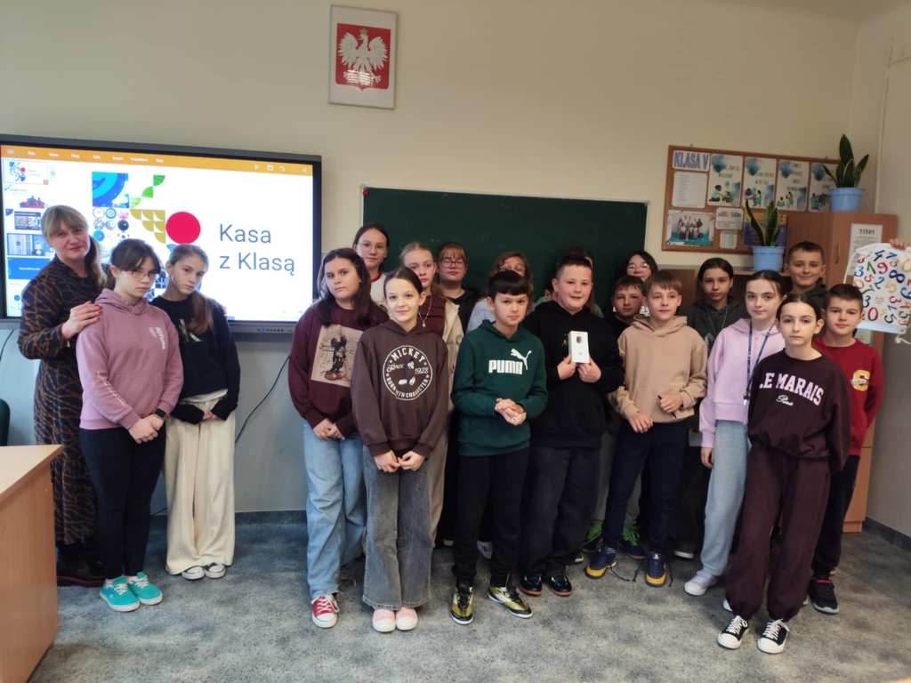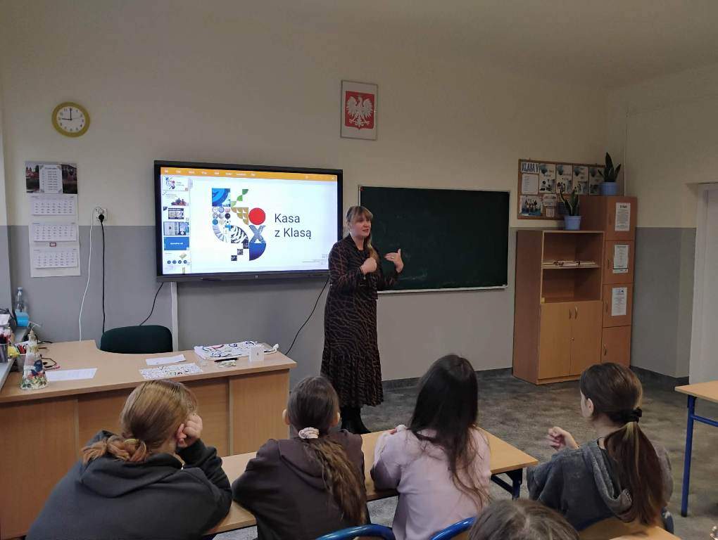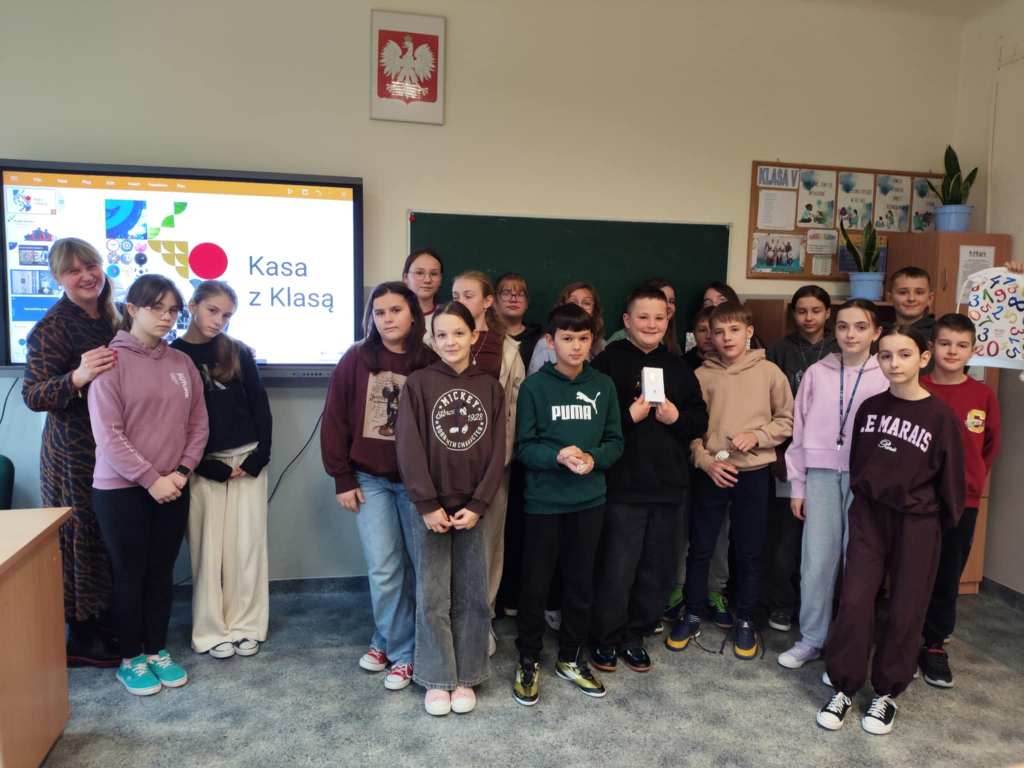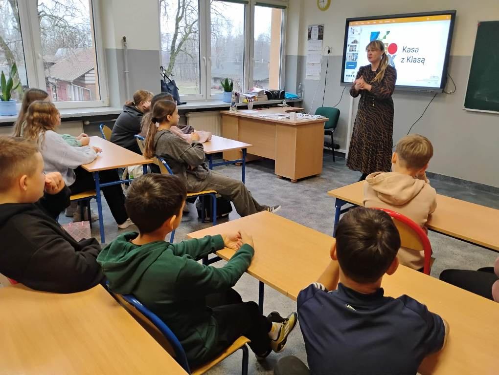 „Kasa z Klasą” – to program edukacji finansowej PKO Banku Polskiego skierowany do młodzieży i młodszych dzieci przez program SKO. Zajęcia te miały na celu pomóc młodym ludziom zrozumieć finanse w praktyce a także rozwijać świadomość finansową.Twórczo przeprowadzone przez p. Dyrektor warsztaty, pozwoliły uczniom zrozumieć co to jest budżet domowy i jak się nim zarządza oraz zasady oszczędzania i inwestowania. Wszyscy słuchali z wielkim zainteresowaniem i angażowali się ochoczo w kolejne zadania, otrzymując za aktywność atrakcyjne gadżety.