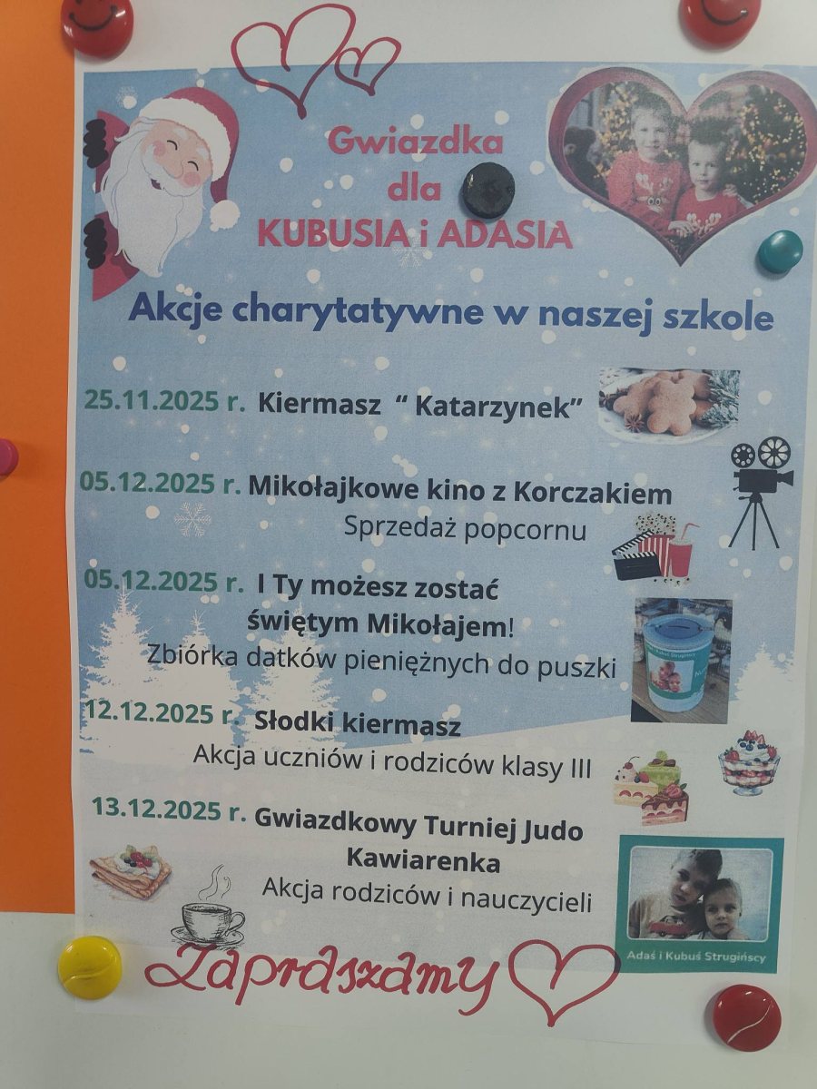 W okresie świątecznym w naszej szkole organizowaliśmy akcje dochodowe na rzecz chłopców – Adasia i Kubusia Strugińskich.