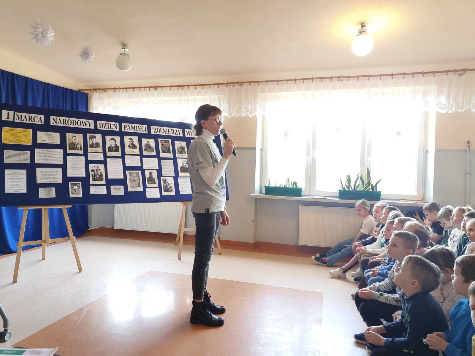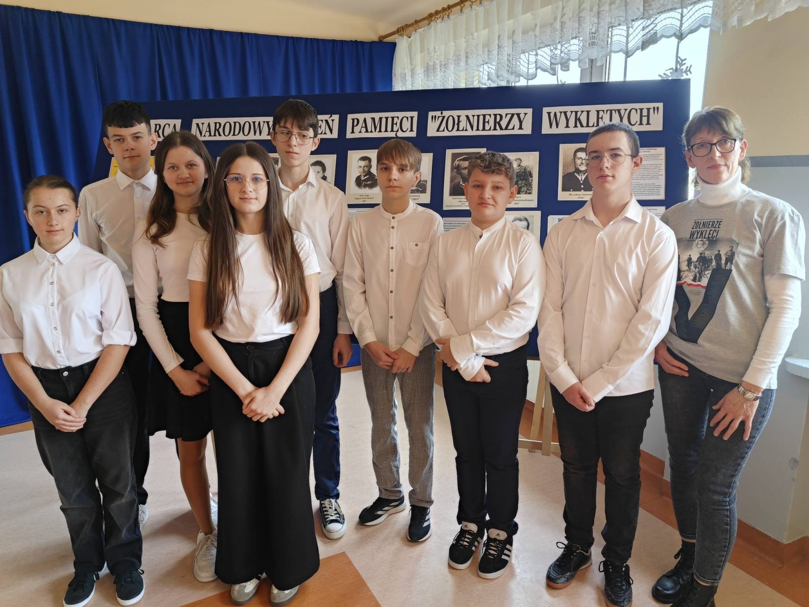 W programie uroczystości, którą rozpoczęliśmy odśpiewaniem całego hymnu Polski, znalazły się informacje i filmowa pogadanka przybliżające trudne losy powojennego podziemia niepodległościowego, prezentacja multimedialna ukazująca sylwetki niektórych Żołnierzy Niezłomnych, m.in. Witolda Pileckiego, Danuty Siedzikówny „Inki”, Augusta Emila Fieldorfa „Nila”, Zygmunta Szendzielarza „Łupaszki”, Stanisława Sojczyńskiego „Warszyca” czy Józefa Franczaka „Lalka” oraz pięknie wykonane przez wszystkich uczniów wzruszające wiersze i piosenki poświęcone naszym bohaterom.