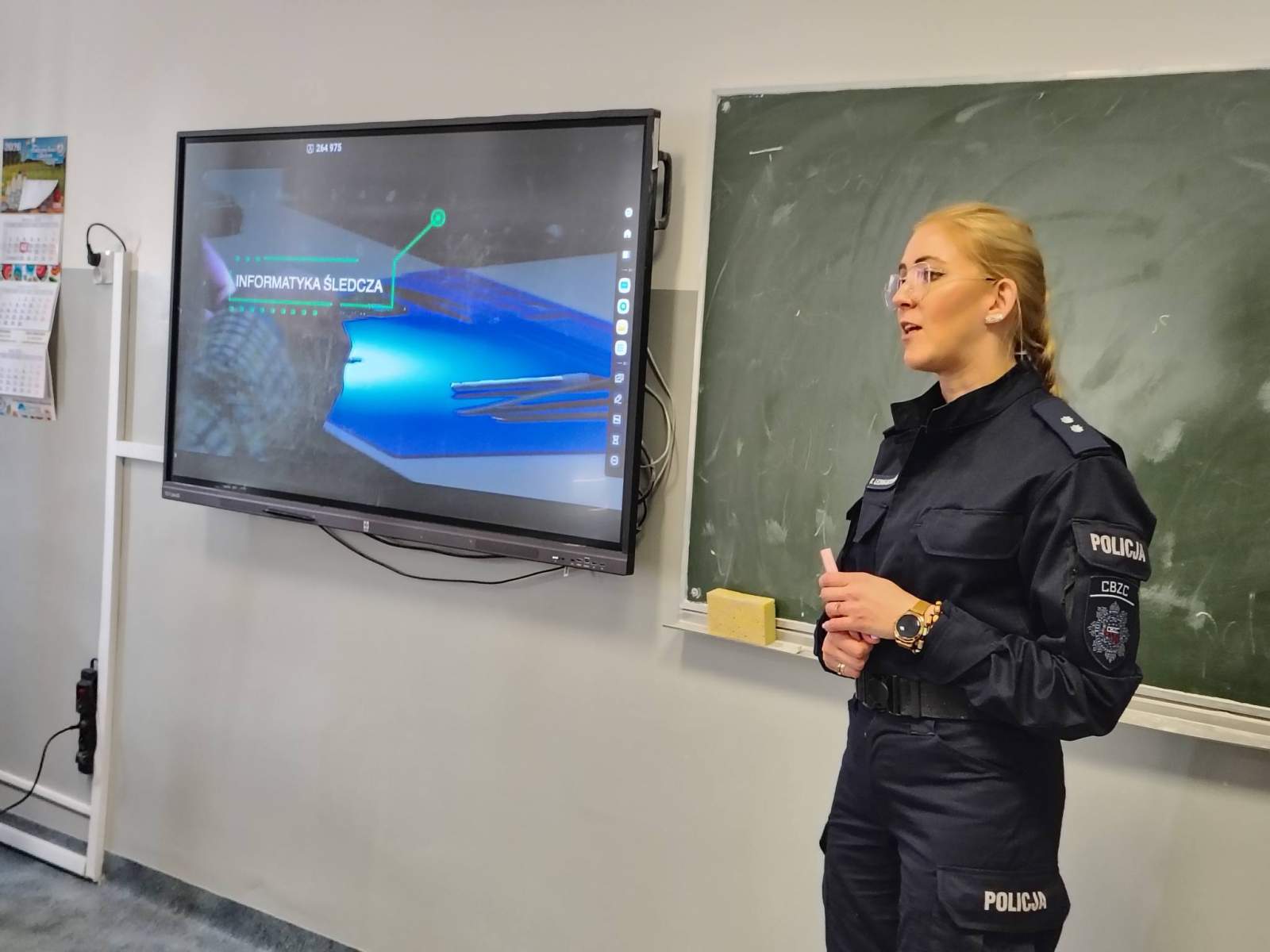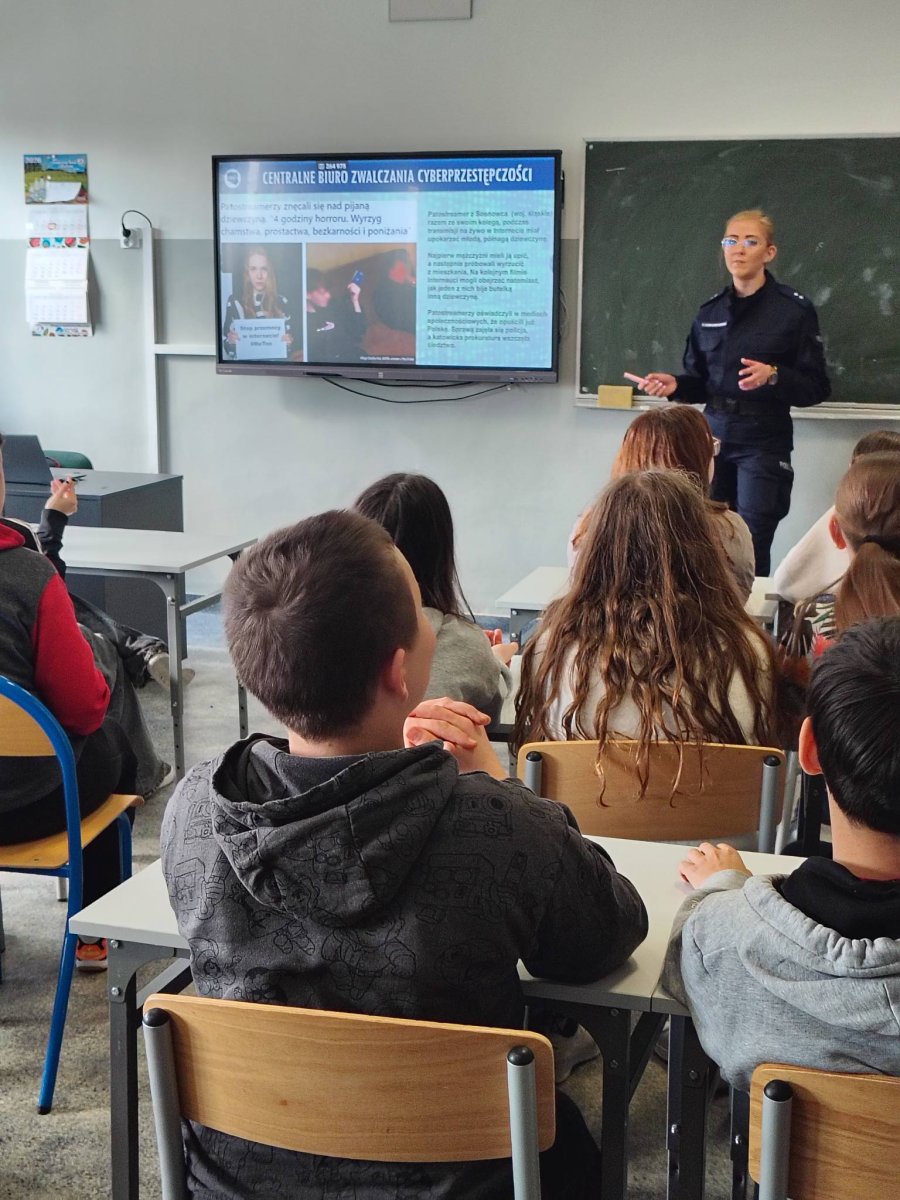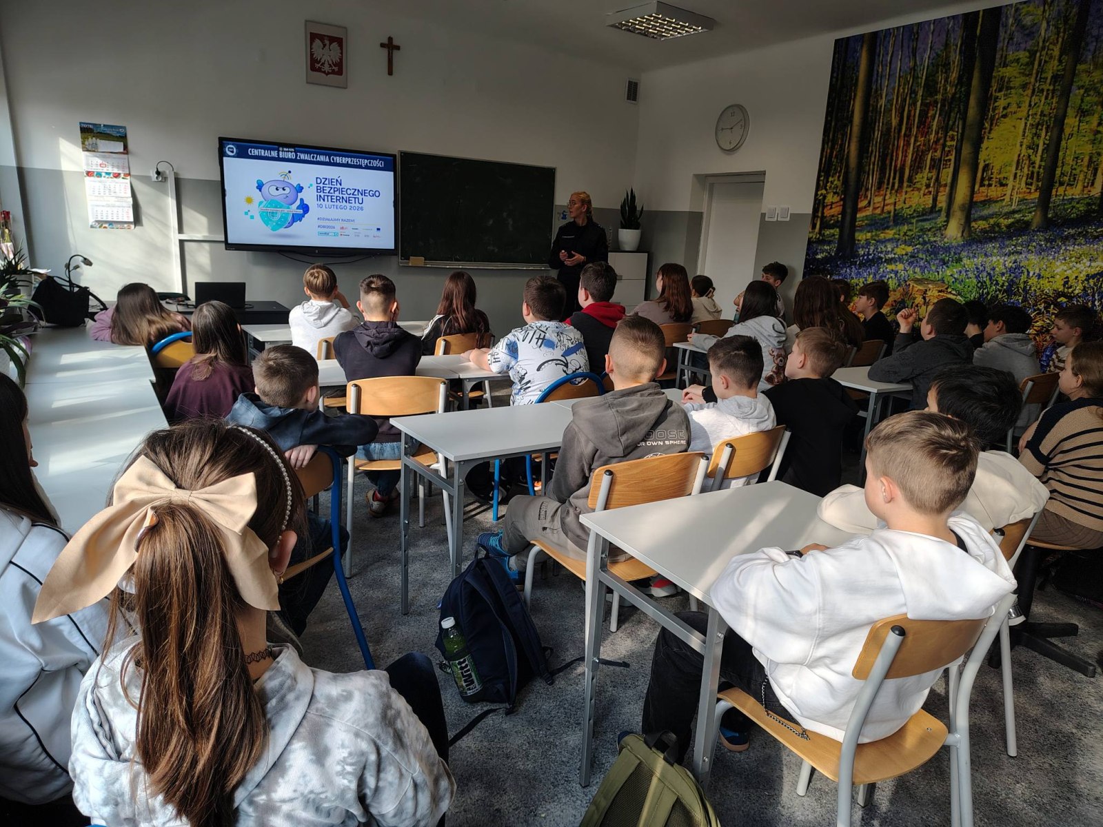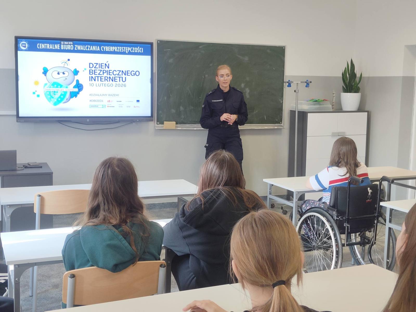 12 marca, w ramach Obchodów Dnia Bezpiecznego Internetu 2026, gościliśmy w naszej szkole funkcjonariuszkę z Centralnego Biura Zwalczania Cyberprzestępczości – Zarząd w Łodzi, panią podkomisarz Katarzynę Lesiak – Brykowską, która podzieliła się z nami wiedzą na temat bezpieczeństwa w sieci.