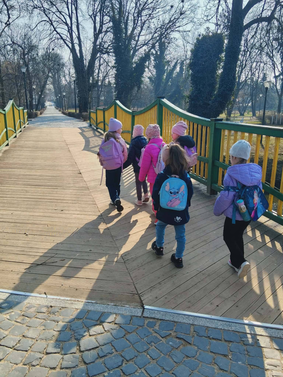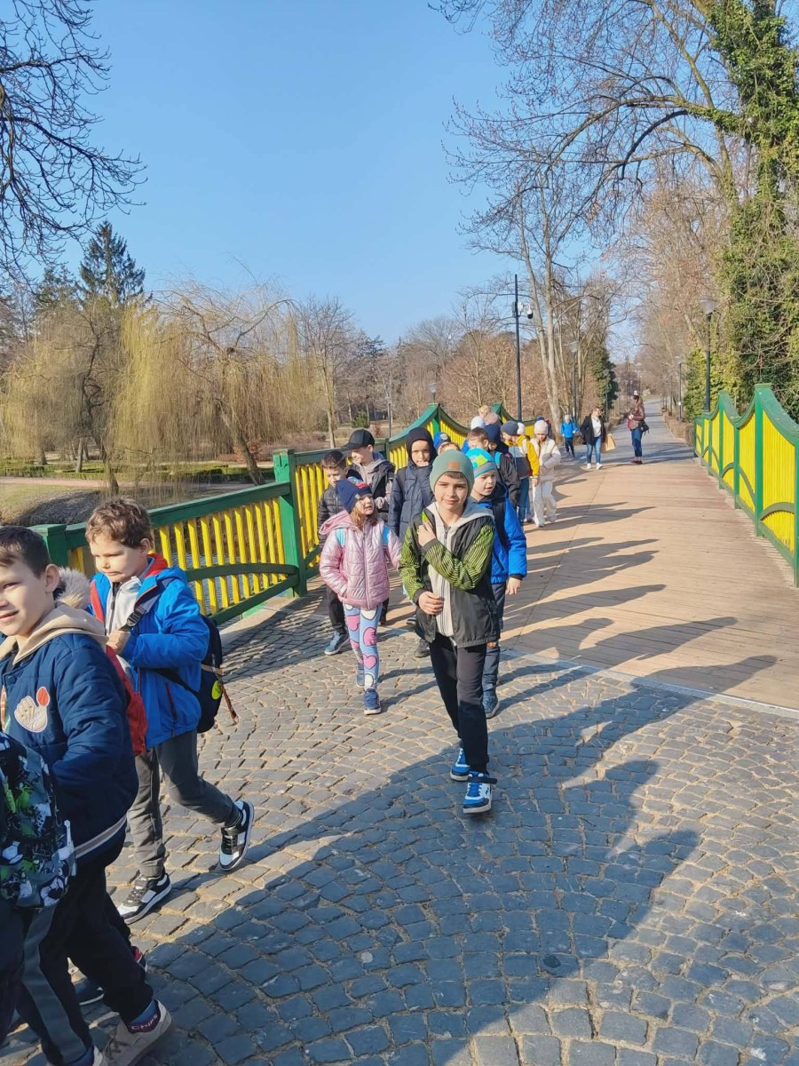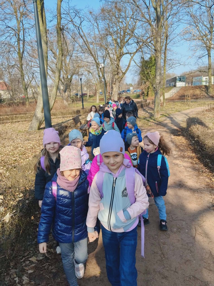 Pierwszym punktem programu był spacer po parku, podczas którego dzieci mogły podziwiać pierwsze oznaki wiosny.