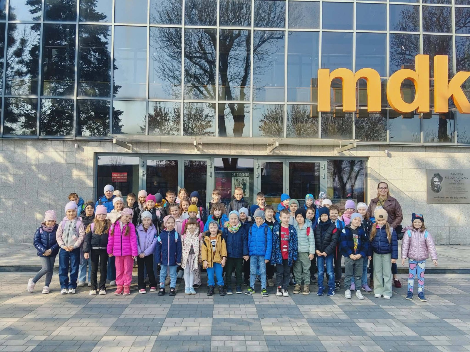 Następnie udaliśmy się do Miejskiego Domu Kultury na spektakl pt. „Czarodziejski ołówek”, który opowiadał o niezwykłym ołówku ożywiającym rysunki i uczącym, jak ważne są dobro oraz pomaganie innym.