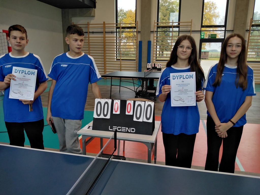 17 października nasza szkoła była organizatorem gminnych Igrzysk Młodzieży Szkolnej w Tenisie Stołowym dziewcząt i chłopców. O najlepsze miejsca walczyły szkoły: SP Białynin, SP Głuchów, PSP Janisławice, SP Michowice i SP Wysokienice. Świetna gra naszych uczniów dała nam I miejsce w turnieju w kategorii dziewcząt i II miejsce w kategorii chłopców, co daje nam awans do mistrzostw powiatu! Gratulacje! Skład drużyn: Dziewczęta: Aleksandra Kowalczyk i Amelia Tokarska Chłopcy: Patryk Pąśko